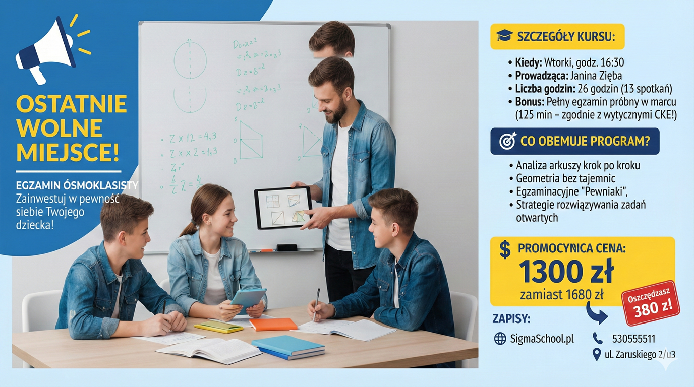 OSTATNIE WOLNE MIEJSCE! – EGZAMIN ÓSMOKLASISTY MATEMATYKA