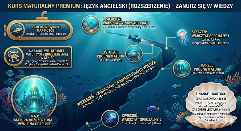 Wrzesień – Kwiecień: 28 x 90 min (Pełny kurs rozszerzony).